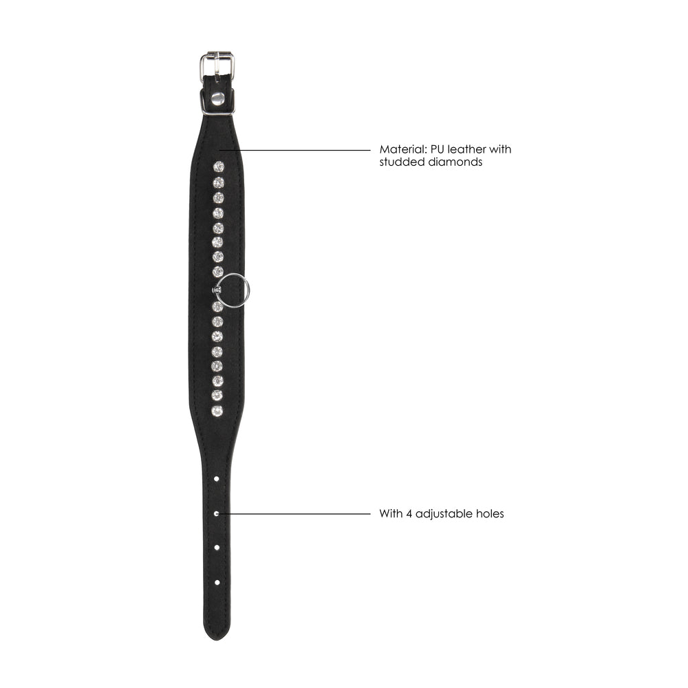 Get ready to please or receive in the intense Diamond BDSM line. Glamorously tough, the perfect combination of firm (faux) leather and glamourous diamond studs will turn you into the star attraction of the night. Sometimes not being in control is the sexiest thing in the world.