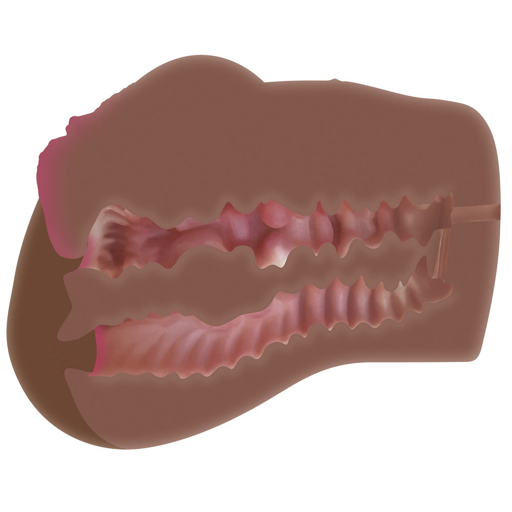 Fulfil your double fantasy with this two-channel stroker that lets you slip through the front door and bang the back door as hard as you want! Crafted with super-stretchy and pliable TPE rubber that moves with your body as you thrust, use the hips to hold on, and dive into that pink sweet spot primed with complementary lube. Feel the life-like tight fits of vaginal and booty canals all around you as you watch the notorious Skyler Nicole for some super hot hardcore inspiration!